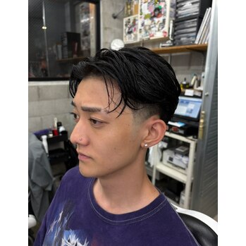 もみあげと襟足だけ0ミリ~の低めのフェードをいれて、耳上はフェードをいれないスタイルになっています!