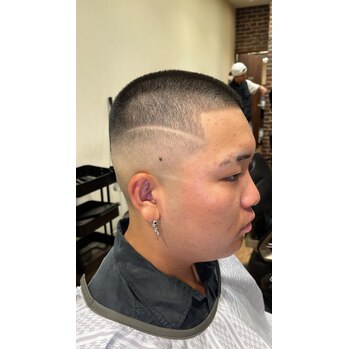 ラインでアレンジを加えたボウズスタイルをご紹介! 2025/11/02 HAIR STYLE こんにちは! CHILL CHAIR 高円寺南口店 KATAYAMAです! 本日はラインでアレンジしたボウズスタイルのご紹介です! 坊主フェードにラインを入れたお客様です。 サイドに眉毛と繋がるようなラインを入れさせてい